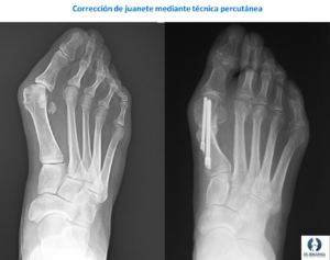 Como hemos señalado previamente, la solución definitiva a un problema de juanete es la cirugía, que nos permite actuar tanto sobre la deformidad ósea como sobre las partes blandas que mantienen la deformidad para volver a tener un pie anatómicamente corregido y biomecánicamente funcional.