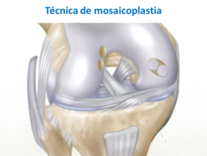 La mosaicoplastia consiste en obtener cartílago de la propia rodilla en pequeños cilindros de una zona de la rodilla sin lesión y trasplantarlos a la zona de daño. Es una técnica empleada desde hace muchos años con buenos resultados y la usamos cuando las lesiones son inferiores a 4cm2 y el cartílago del paciente está completamente dañado.