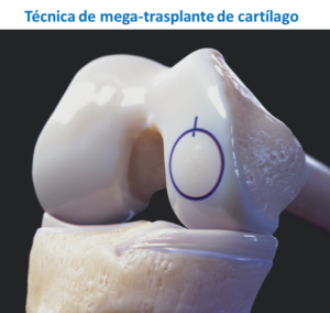 Esta técnica también llamada Mega-OATS se realiza ante lesiones de un tamaño muy grande donde las técnicas anteriores no son practicables. El injerto se obtiene habitualmente de un donante dado que es necesario más de 6cm2 de tejido en muchas ocasiones.