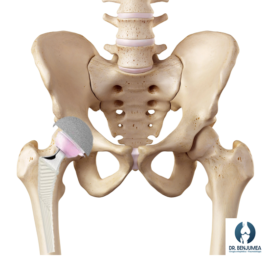 La prótesis tiene dos componentes fundamentales, que sustituirán la cabeza femoral y al acetábulo. El sustituto femoral se llama vástago protésico y se coloca en el canal del fémur. Para poder moverse de manera adecuada, el vástago termina en una cabeza redonda, que se mueve sobre una copa, el acetábulo protésico. Para que ambas piezas durante el movimiento no choquen directamente, lo que provocaría un desgaste acelerado, colocamos una pieza llamada inserto, que puede ser de cerámica o de polietileno. Las prótesis suelen estar compuestas de aleaciones metálicas lo que le dan sus características principales de resistencia y durabilidad.