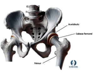 La articulación de la cadera está formada por dos huesos. Por un lado, el acetábulo, con forma de cuenco, y por el otro el fémur que es una cabeza unida a un hueso recto. Para que la articulación funcione correctamente la cabeza del fémur debe de poder moverse libremente dentro del acetábulo. Los ligamentos y músculos consiguen que esa cabeza no se salga del cuenco y podamos andar, correr, etc sin problemas.