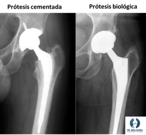 Prótesis biológicas (press-fit): Son prótesis que en un primer momento se agarran mediante presión, y que presentan un material provoca que el hueso del paciente pueda “crecer” hacia adentro de la prótesis, integrándola en el propio cuerpo. Se recomiendan en pacientes con un hueso que aun sea fuerte. Es la más empleada en el caso de artrosis de cadera.