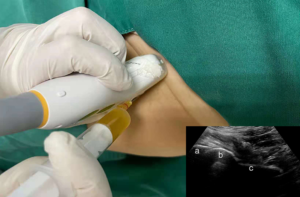 Infiltraciones: Para lograr un alivio inmediato del dolor y dirigir un antinflamatorio específico contra la zona inflamada de la bursa, podemos infiltrar corticoide junto con anestésico local. Cuando el daño está fundamentalmente a nivel de los tendones con desgarros o tendinosis crónica puede ser beneficioso emplear terapias de medicina biológica cómo plasma rico en plaquetas (PRP). Cuando estas infiltraciones se realizan bajo control ecográfico aumentan mucho las probabilidades de acertar en el tejido que queremos infiltrar.